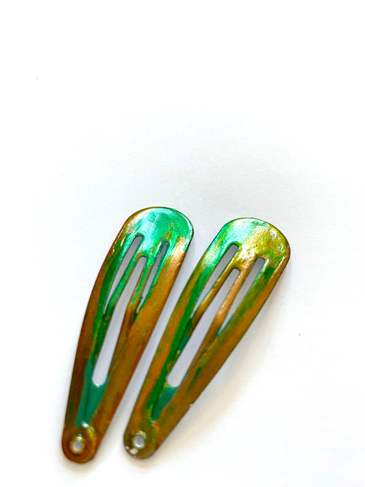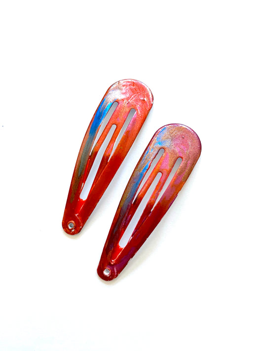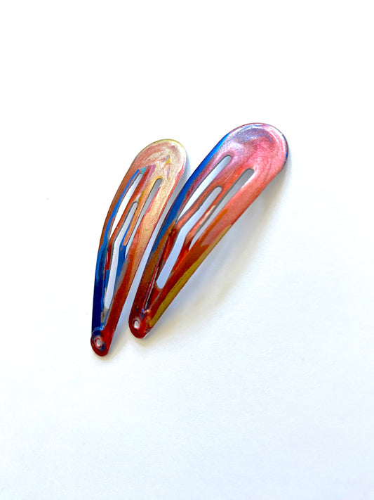 On barrettes, shimmering colors merge to create shades like sunset and shallow depths of the ocean. Add lustrous sparkle to your hair accessory collection.