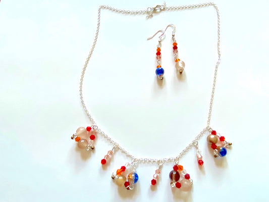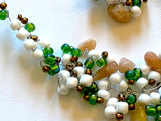 I began mixing beads and gemstones to make jewelry because I was looking for alluring designs. Making these earrings and necklaces is a hobby.
