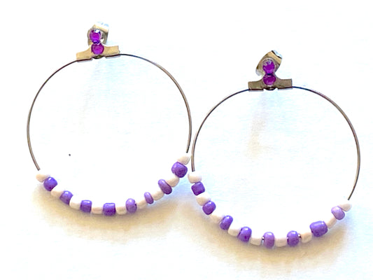 Purple White Hoop Earrings