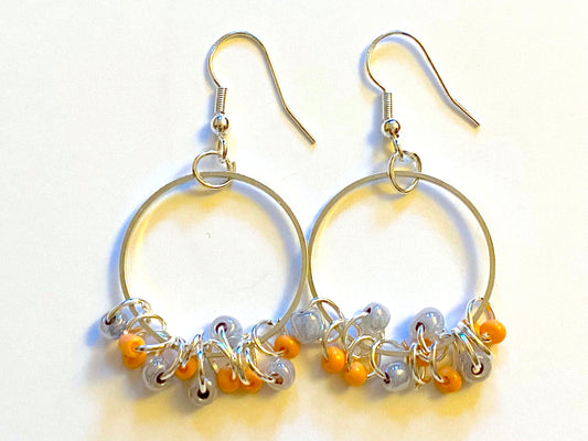 Peach Silver Gray Shimmer Hoops