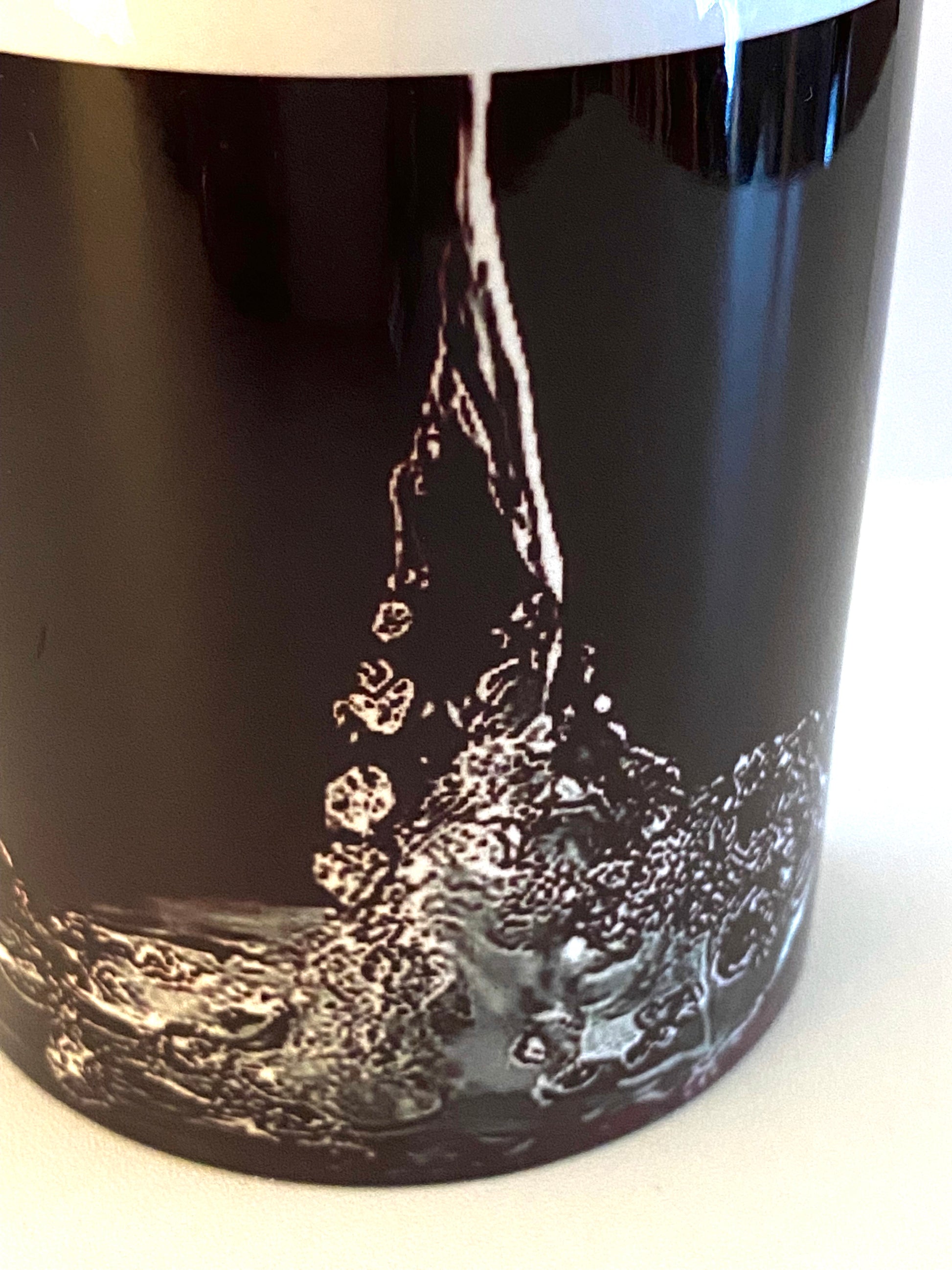 Elevate your daily coffee ritual with our ceramic mug featuring original AI art depicting delicate water droplets. A must-have for any art lover looking to add a touch of luxury to their collection.